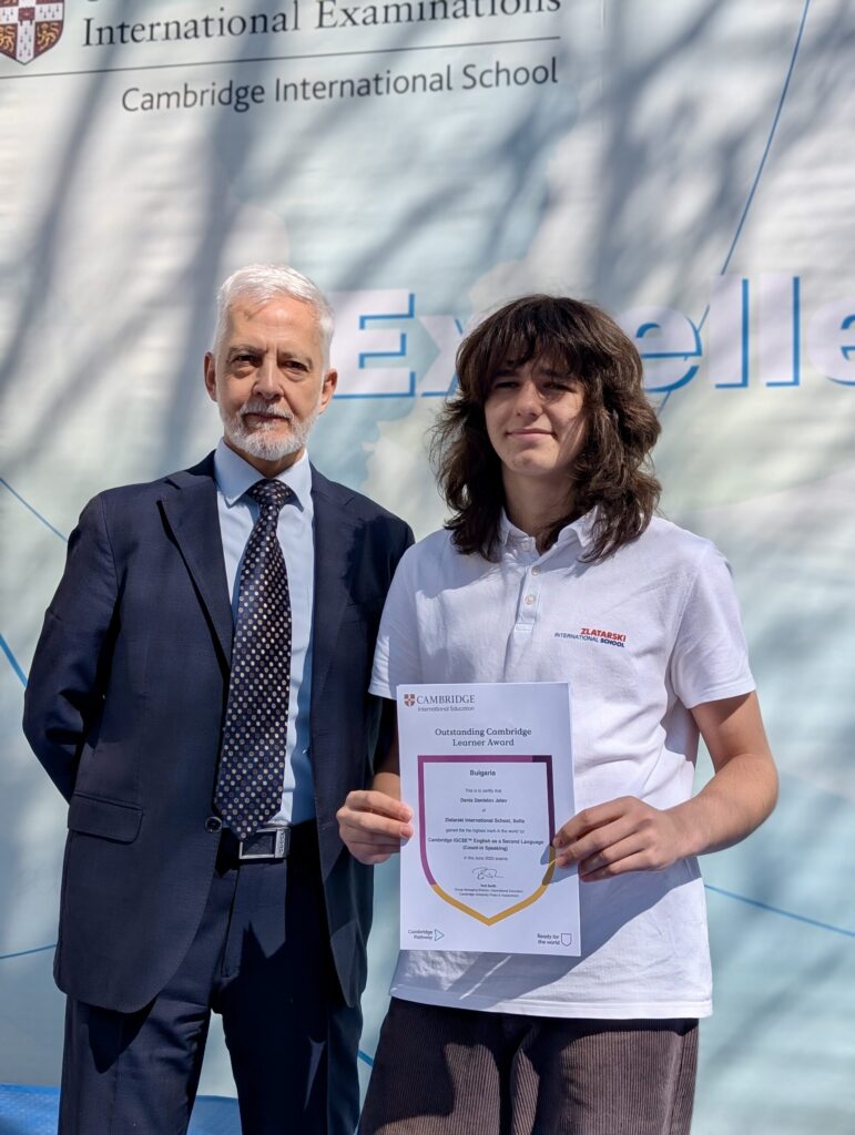Tsvetana Kardasheva, Principal of Zlatarski International School said that the awards recognised the talent and commitment of both learners and staff. She said: ‘We are beyond proud of the exceptional achievement of Denis, who joined the school in Grade 6, achieved excellent results in the Cambridge Checkpoint exams in Grade 8, achieved outstanding results in the Cambridge IGCSE exams in Grade 10 and is now an active member of our IB Diploma Programme. We want to thank our dedicated teachers for their hard work and professionalism. Their commitment to the students and the school is the reason behind these outstanding results. From all of us, including parents and the school, we thank them for supporting our students to do their best at Zlatarski International School’.